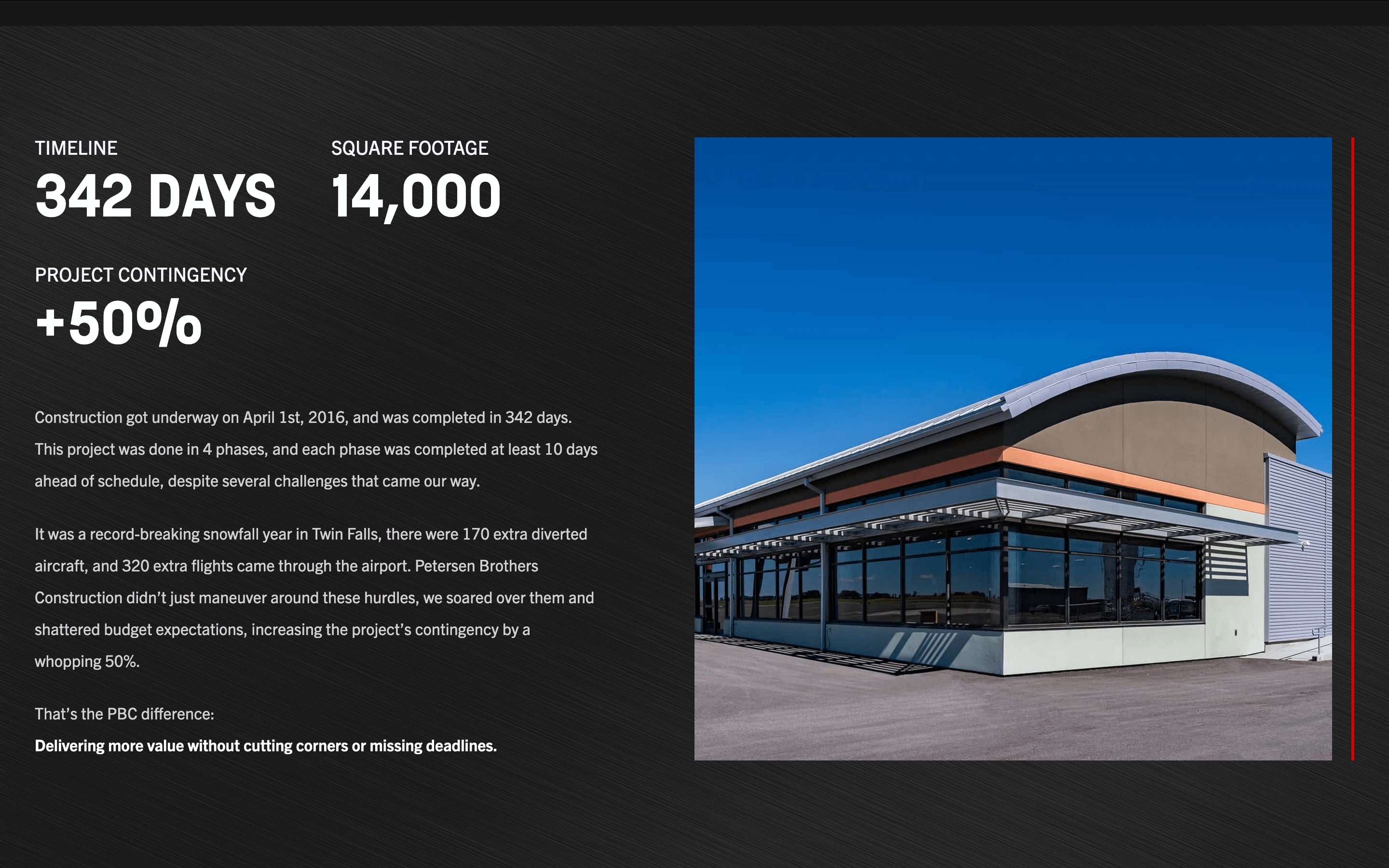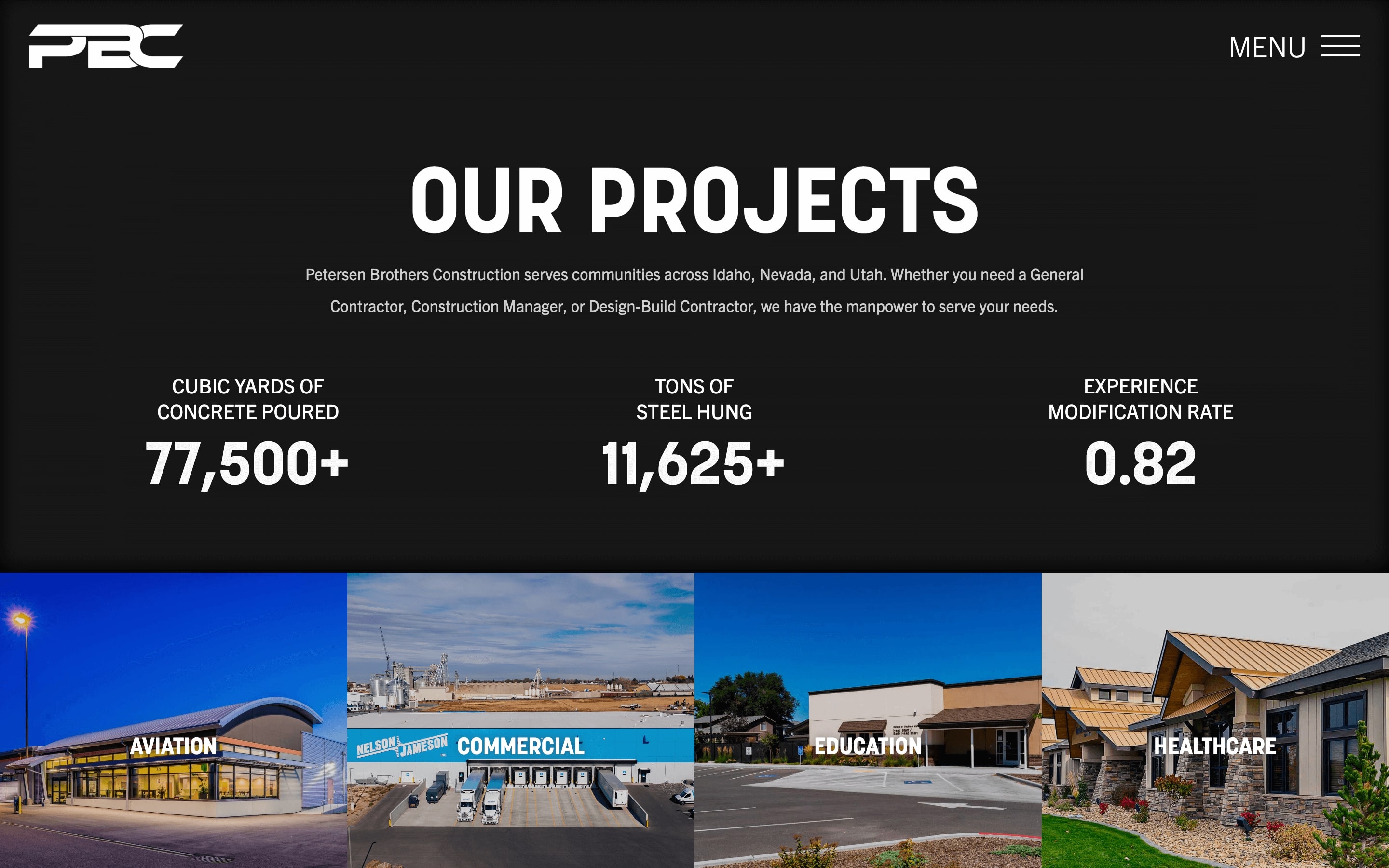 The existing website for Petersen Brothers Construction (PBC) didn’t reflect their accomplishments. Although they are one of Southern Idaho’s largest and most respected construction companies, their website was uninspired and failed to effectively generate leads. It wasn’t a platform that communicated the strength of PBC’s brand or its dedication to exceptional craftsmanship. But what if their website functioned as a visual portfolio first, and a construction site second? This approach would elevate their brands and speak to their core beliefs of quality, integrity, and leadership.